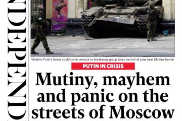 The Sunday Mirror interprets Putin as being “on edge” as the Wagner Group’s march towards Moscow was stopped just in time.