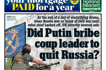 In the Mail on Sunday’s lead story, questions are raised whether Putin bribed Wagner Group leader Yevgeny Prigozhin to depart Russia as the mercenaries were recalled.