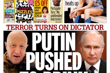 The Daily Star Sunday’s front page compares the madness of both Putin and mercenary boss Prigozhin during the Wagner Group’s rebellion in Russia.