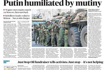 The Sunday Telegraph reports on the Wagner Group’s mutiny being neutralised after an agreement with Putin.