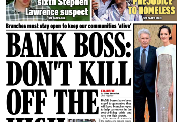 The survival of high street bank branches is the focus of the Daily Express, reporting calls for banks to assure their continued operation.