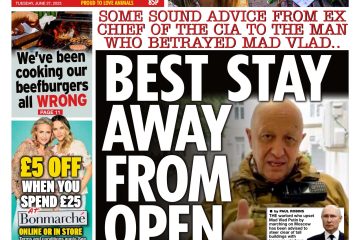 The Daily Star features an ex-CIA chief’s advice to Wagner’s Prigozhin to avoid open windows.