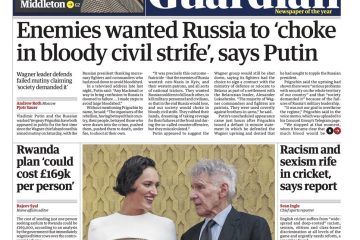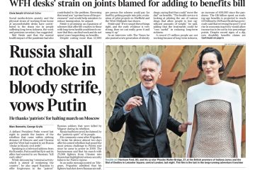 The Times centres on Putin’s resilient claim that Russia will resist internal strife.