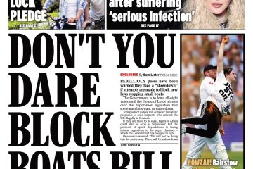 The Daily Express anticipates a showdown in the House of Lords over legislation concerning small boats.