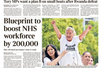Daily Telegraph’s lead story is about the Prime Minister’s proposed NHS reforms aimed at addressing staff shortages by creating an ‘army of apprentice medics’.