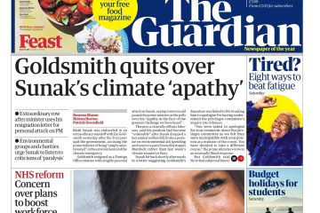 The Guardian leads with Zac Goldsmith’s resignation from the government, accusing Chancellor Rishi Sunak of environmental indifference.