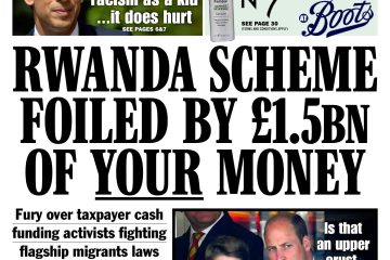 The Sunday Express covers the story of taxpayer money given to organisations opposing the relocation of asylum seekers to Rwanda.