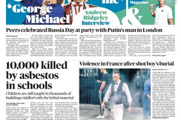 The Sunday Times reports on former pupils and teachers suffering from exposure to asbestos in schools, with many classrooms still containing the harmful material.