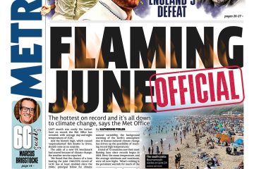 Metro conveys concern over global warming with a report from the Met Office, declaring last month as the hottest June ever recorded.