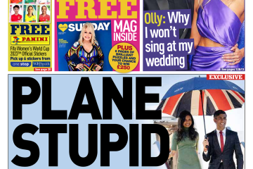 The Sunday People highlights government’s spending of an extra £800,000 to paint a UK flag on the Prime Minister’s jet.