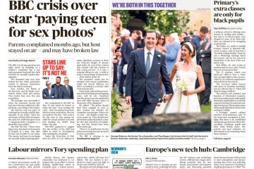 The Sunday Telegraph too spotlights the BBC’s alleged mishandling of an investigation into a presenter accused of explicit misconduct.