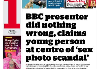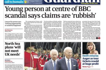 The Guardian features the BBC scandal’s young person refuting their parents’ allegations about a presenter paying for explicit images.