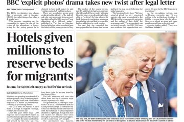 The Times reports that the government has reserved hotel beds for potential migrant channel crossers, an action that has financially benefited the hotels.