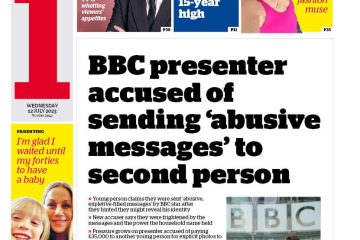 The Times covers new accusations against the suspended BBC presenter, alleging he sent abuse to a dating app user.