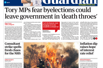 The Guardian anticipates the Conservatives are preparing for “painful results” in the forthcoming three by-elections.