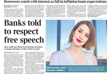 The Times brings news of banks potentially losing their licences if they close accounts based on disagreements with a customer’s political beliefs.