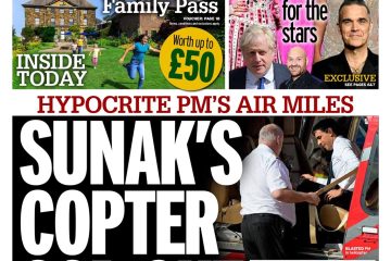 The Sunday Mirror criticises Rishi Sunak for his use of a helicopter for a 200-mile journey amidst environmental concerns.