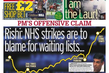The Daily Mirror reports that Rishi Sunak has blamed striking doctors for the increase in NHS waiting lists.