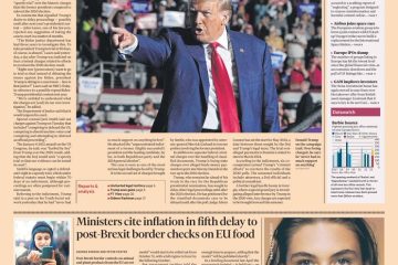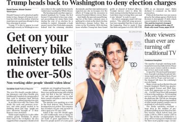 The Daily Telegraph’s front picture features Justin Trudeau and Sophie Gregoire Trudeau announcing their separation after 18 years of marriage.