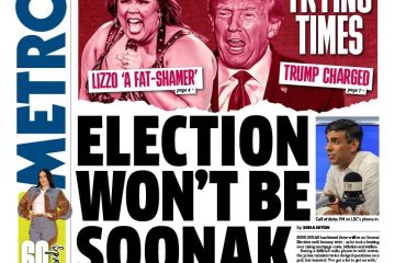 The Metro’s headline, “Election won’t be Soonak,” reports the Prime Minister’s hint that a general election may not occur until January 2025.