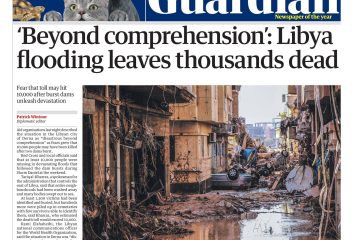 The Guardian paints a bleak picture in Libya’s Derna with reports of a devastating 10,000 missing after floods.