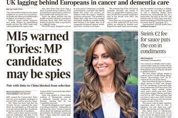 The Times reveals MI5’s warning to the Conservative Party about potential MP candidates possibly being Chinese spies.