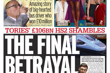 The Daily Mirror reports on Downing Street’s potential cancellation of HS2’s Manchester segment, terming it the “final betrayal”.