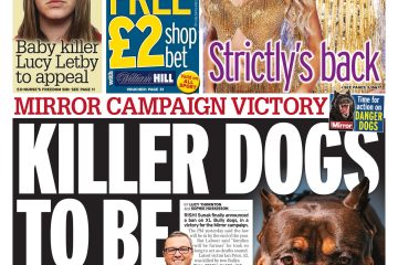 The Daily Mirror highlights Rishi Sunak’s prohibition on XL bully dogs amid criticism over delayed action.