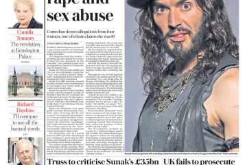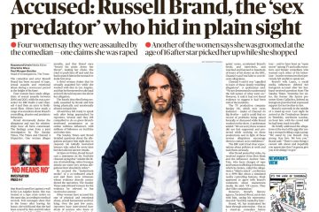 Sunday Mirror’s front page highlights the rape and sexual assault accusations levelled against comedian Russell Brand.