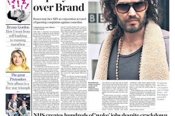 The Daily Telegraph reports on the BBC’s urgent investigation into allegations concerning Russell Brand.