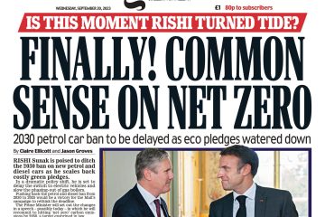 The Daily Mail reports on Rishi Sunak’s plans to postpone the 2030 ban on new petrol cars, terming it a “common sense” move.