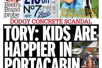 The Daily Mirror highlights the education secretary’s assertion that children are more content in portacabin classrooms.