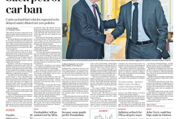 The Daily Telegraph leads with the Prime Minister’s strategy to postpone the prohibition on petrol and diesel vehicles, thereby diluting Tory climate commitments.