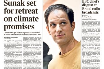 The Times highlights Rishi Sunak’s alleged intention to postpone the 2030 deadline for phasing out gas boilers and petrol/diesel cars.
