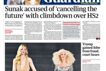 The Guardian reports on Rishi Sunak facing criticism for allegedly backtracking on the HS2’s Birmingham and Manchester extension.