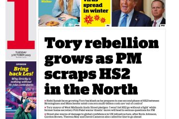 The Financial Times reports on the growing backlash against Rishi Sunak’s decision to cancel the northern leg of HS2.