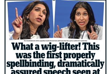 The Daily Mail reports Suella Braverman’s Conservative conference speech as a “wig-lifter”.