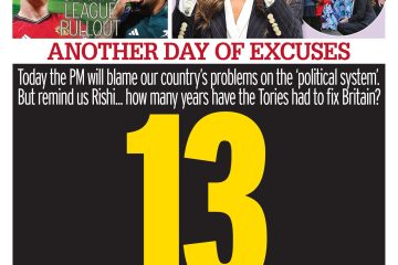 The Daily Mirror highlights Rishi Sunak’s attempt to fault the “political system” for national issues, despite his party’s long-standing governance.