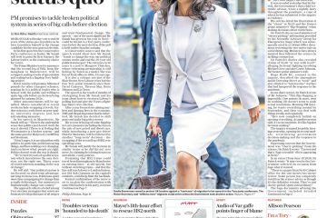 The Daily Telegraph reports Rishi Sunak’s promise to “change the status quo” in his upcoming conference speech.