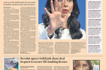 The Financial Times reports a 16-year high for 30-year US treasury bond yields, causing global market instability.