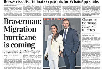 The Times covers Suella Braverman’s speech on migration issues at the Conservative conference, criticising celebrity opposition.