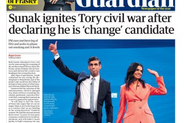 The Guardian reports on Rishi Sunak’s decision to scrap the northern leg of HS2, sparking a Tory civil war.