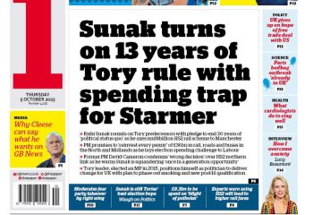 Rishi Sunak’s vow to break the “political status quo” of 30 years leads the i paper, following the cancellation of the HS2 Manchester rail line.