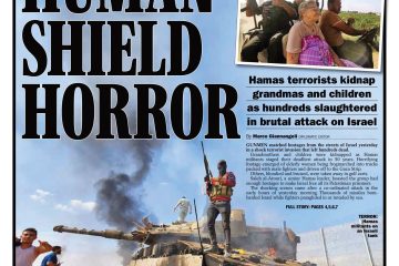 The Sunday Express reports on the horrifying use of human shields by Hamas militants following a surprise invasion.