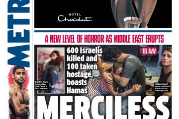 2023-10-09 Metro Front Page 9th of October 2023The Metro reports on the eruption of violence in Israel after a weekend attack by Hamas. By FindSales, 2 yearsOctober 8, 2023 ago