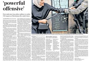 The Daily Telegraph reports on Israel’s armed forces targeting 750 sites in the Gaza Strip.