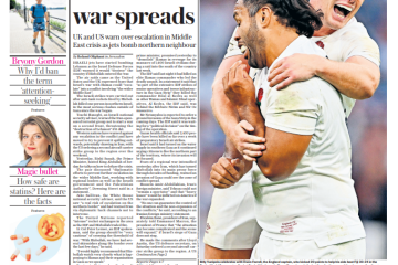 The Daily Mirror reports on the escalating fears of war following Iran’s agreement to maintain its alliance with Hamas.