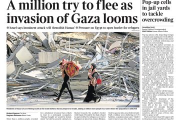 The Times reports that over a million individuals are attempting to escape Gaza amid Israel’s planned offensive.