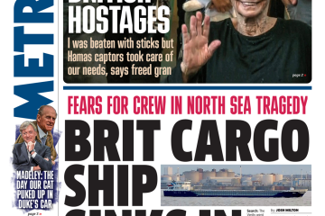 Metro reports on the ongoing search for four crew members from a British ship that sank in the North Sea.