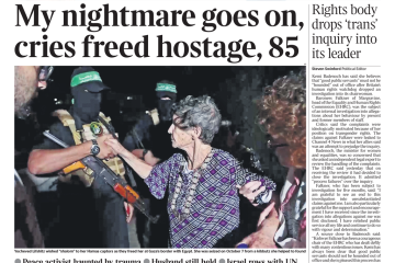 The Daily Express reports on a freed hostage who greeted her Hamas captor with ‘Shalom’ upon release.
